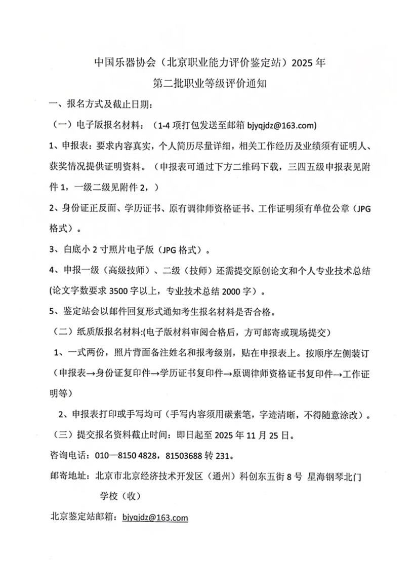 2025年第二批职业等级评价通知(北京职业能力评价鉴定站)-中国乐器协会