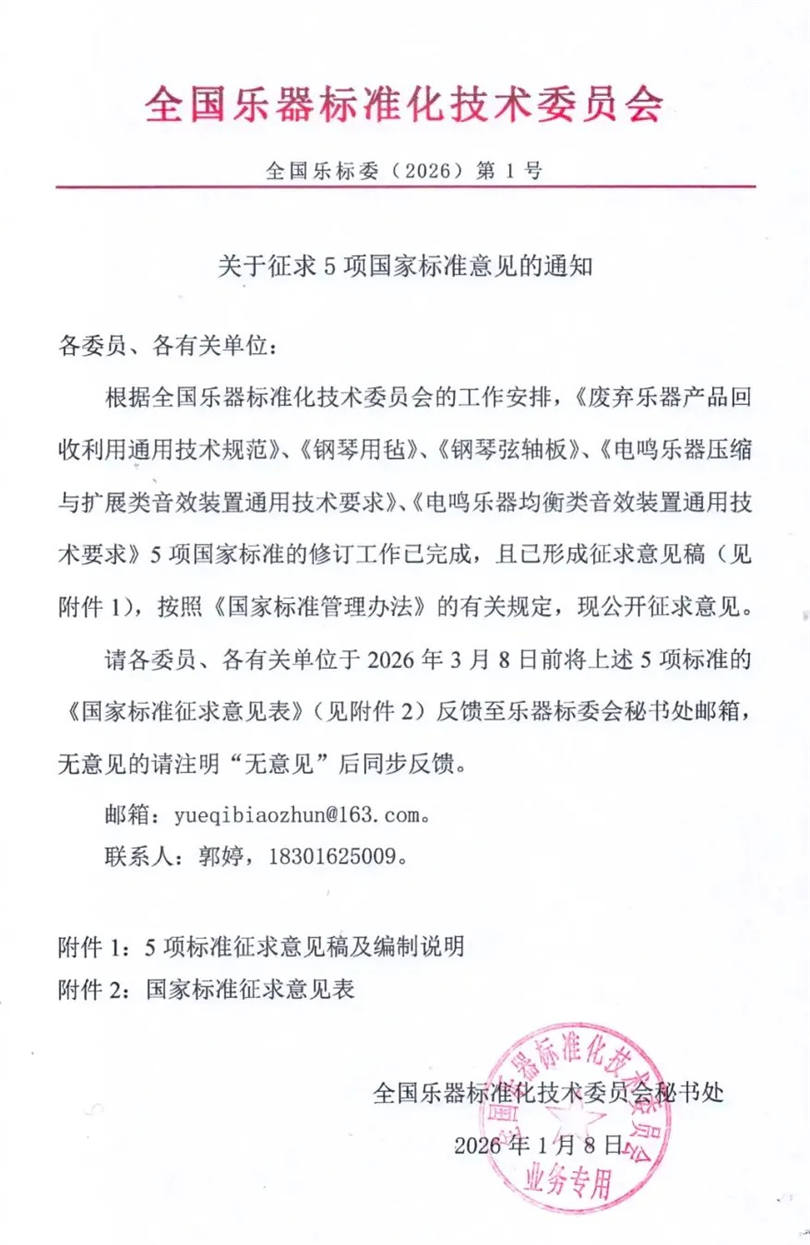 关于征求5项国家标准意见的通知-中国乐器协会