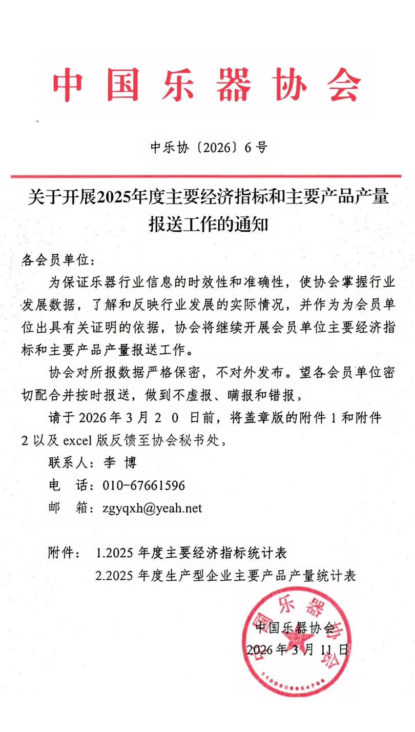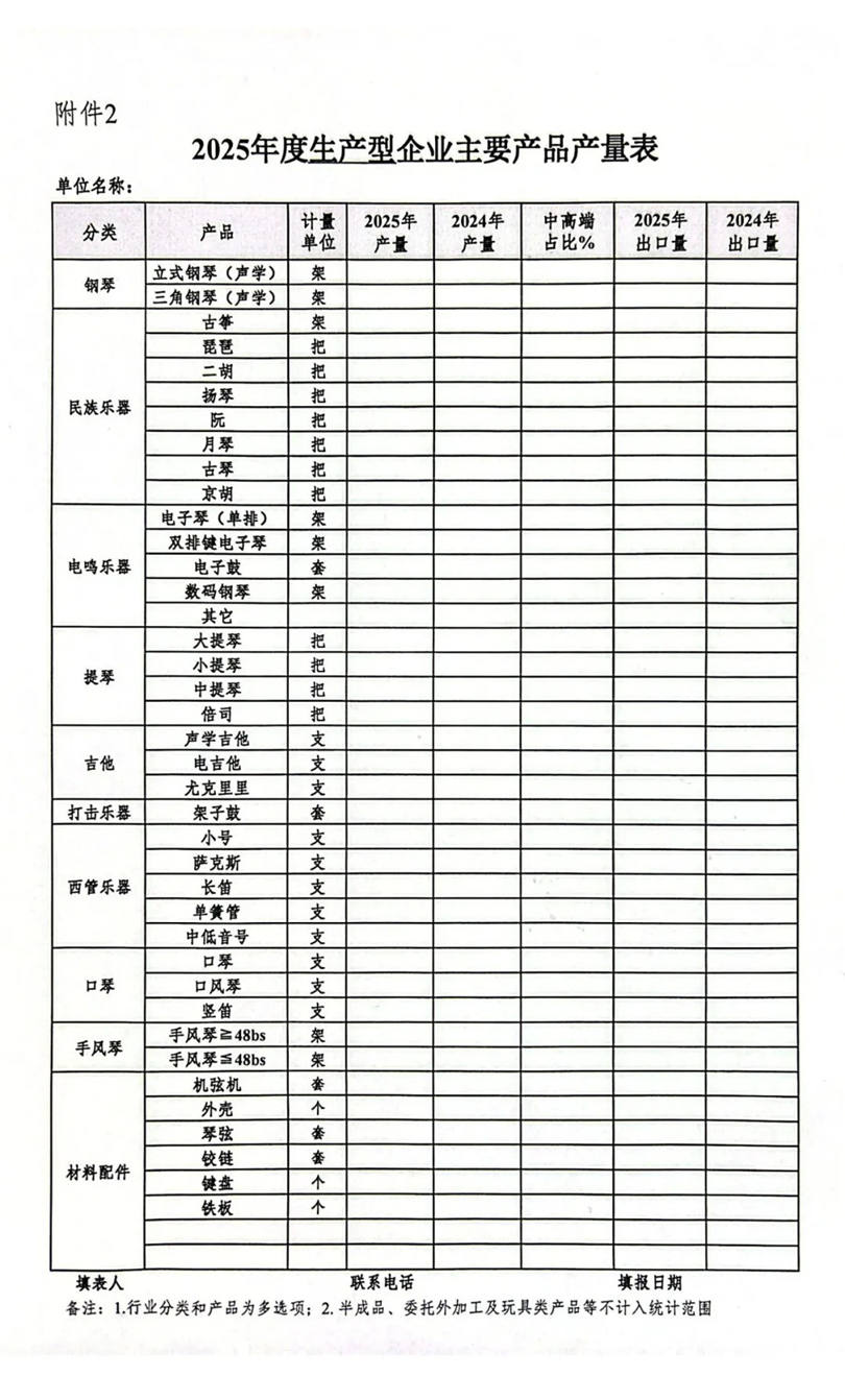 关于开展2025年度主要经济指标和主要产品产量报送工作的通知-中国乐器协会