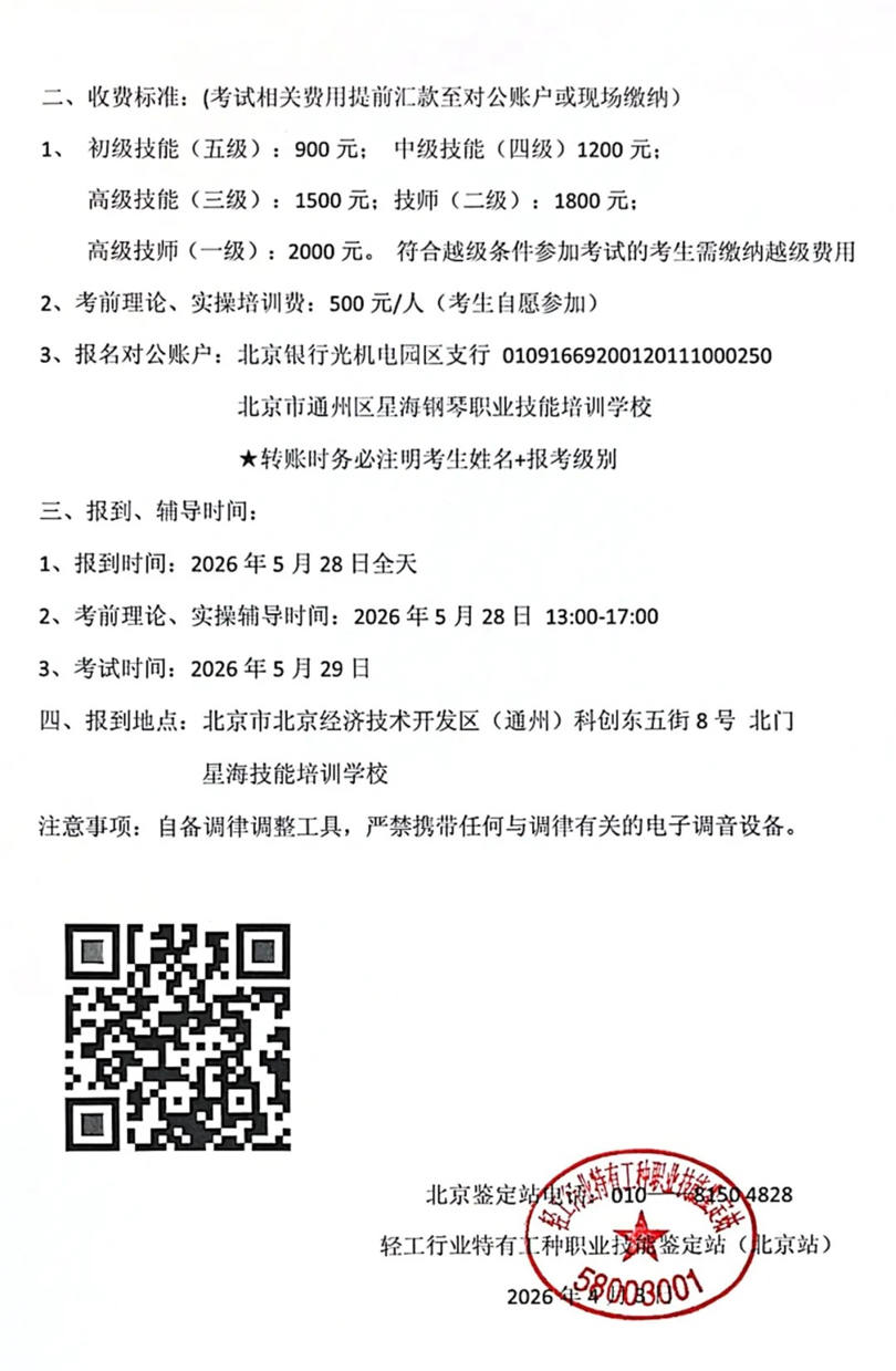 当前位置:首页>公告>中国乐器协会(北京职业能力评价鉴定站) 2026年第一批职业等级评价通知