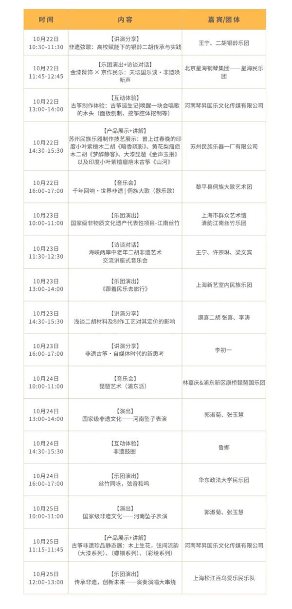 为进一步弘扬中华优秀传统文化,保护与传承非物质文化遗产,让更多人了解、喜爱民族乐器和传统音乐文化,激发其全新活力,并乘着“春节”正式列入人类非物质文化遗产代表作名录后首个“非遗中国年”的东风,今年上海国际乐器展特别推出民乐非遗主题专区,并联合上海市群众艺术馆(上海市非物质文化遗产保护中心)打造“古音新生·乐见非遗”首届传统乐器文化节活动。