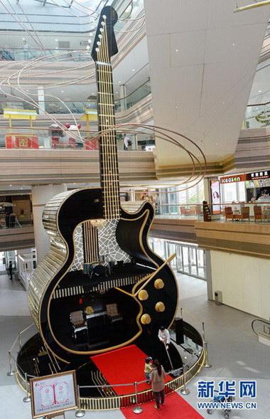 中国乐器协会网讯:据上海网报道,继2012年的“世界最大沙发”、2013年的“世界最大皇冠”之后,近日,上海黄埔区恒基名人购物中心又迎来了“世界最大吉他”。