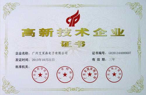 此次证书的取得,是国家、各级政府对艾茉森公司的科研能力和整体技术水平的肯定和认可,公司将继续围绕研发面向市场,科技服务市场的原则,进一步提高自主创新的能力,进一步提升公司的品牌形象,不断加强研发投入,提高技术创新能力,提升服务水平,充分发挥高新技术企业的优势和模范带头作用,打造持久的产品竞争力,并为推动公司又好又快发展创造新的更好的条件。