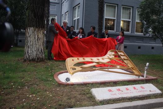 在施坦威钢琴展示中心(南京)前的花园草坪举行的“施坦威花园”的揭幕仪式上,施坦威全球董事长和首席执行官迈克尔 ·斯威尼、施坦威欧洲公司总经理兼亚太区总裁维尔纳·胡斯曼、施坦威钢琴(上海)有限公司总经理位炜等多位嘉宾共同为花园内的标志性设计—由施坦威九尺音乐会三角钢琴的铸铁板和刻有“施坦威花园”字样的雕刻揭幕。施坦威花园设计理念“别出心裁”,一块充满艺术底蕴、别具匠心的施坦威音板的艺术造型巧妙镶刻在草地上,成为施坦威钢琴常驻于此的恒久见证。
