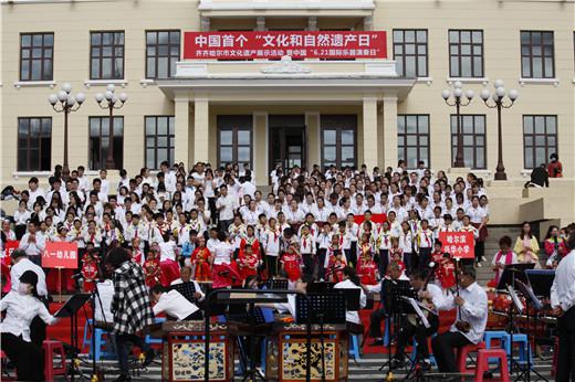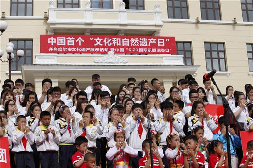 为了迎接中国的第12个文化遗产日,也是第一个文化和自然遗产日。6月10日上午,由齐齐哈尔市文化广播出版局主办,齐齐哈尔市群众艺术馆及齐齐哈尔市非物质文化遗产保护中心承办的中国首个“文化和自然遗产日暨6.21国际乐器演奏日”活动在工人文化宫中心广场隆重举行,齐齐哈尔市文化广电新闻出版局局长孙志斌、中国乐器协会常务副理事长曾泽民、中国民族器乐学会常务副会长兼秘书长毕可炜出席了活动,共同观看了由齐齐哈尔市幼儿园及大中小学共计3500余人带来的丁笛表演。