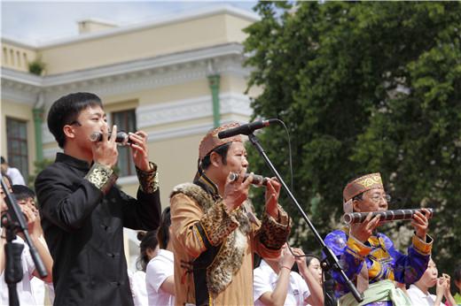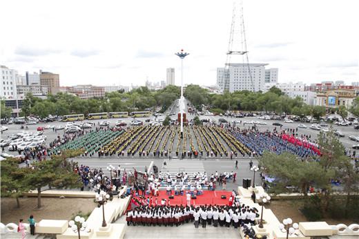 千人丁笛合奏《我和你》、《欢乐的达斡尔》、《我爱你塞北的雪》