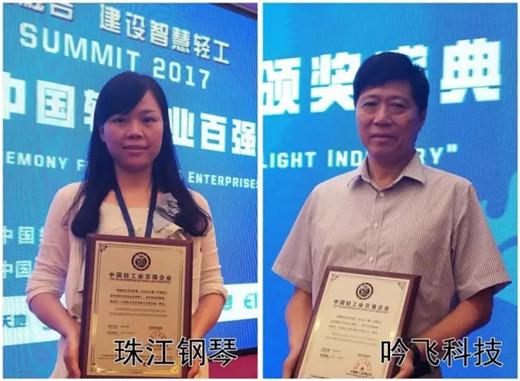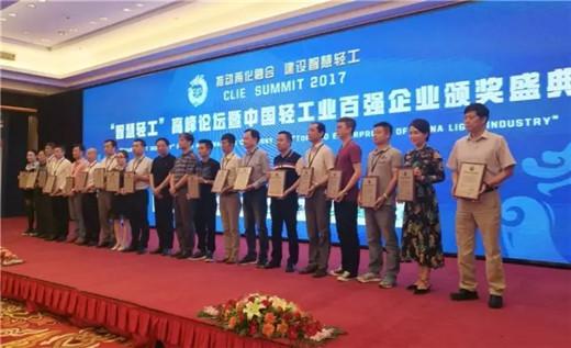 颁奖典礼上,杜同和副会长宣读表彰决定,海尔集团等100家企业被授予“2016年度中国轻工业百强企业”;美的、茅台等企业分别获得专项百强企业称号。在研发能力和电商能力方面,乐器行业的珠江钢琴和吟飞科技分别获得表彰。