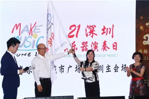 中国乐器协会秘书长陈晋武,中国民族乐器协会办公室主任弋秀芬,中国民族乐器协会常务理事、著名古筝演奏家谢迎春,福田区委宣传部、区文体局局长简定雄,深圳市伊诺乐文化科技有限公司董事长袁雁,6.21国际乐器演奏日深圳活动总策划、深圳艺校教授尹小艺等嘉宾及20余家媒体出息了当晚的活动。这里没有华丽的舞台、剧场、灯光,同时也没有界限,只有热爱音乐的人们。在此,器乐表演艺术家和音乐爱好者以及孩子们同台表演,一颗颗热爱音乐的心一起在舞台上欢快地跃动。当晚,深圳6.21庆典音乐会深圳大学分会场也在深圳大学国际会议厅举办,深大钢琴系研究生导师王昌逵教授表示,音乐可以在任何时候、任何地方、任何条件下响起,可以毫无疑义地提升人们的幸福指数。