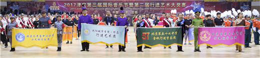 2017津宝第三届国际音乐节行进艺术大赛的各参赛团队代表和乐手入场。