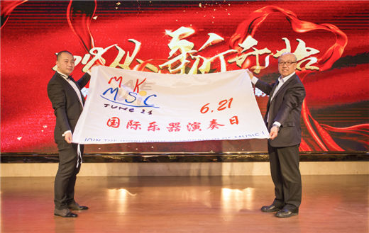 陈晋武秘书长还现场为河北秦川教育集团总裁秦浩先生授发了“6•21国际乐器演奏日”活动旗帜,鼓励河北秦川教育集团将音乐艺术传递到普通人的生活当中,传播到千家万户,用音乐影响更多人!