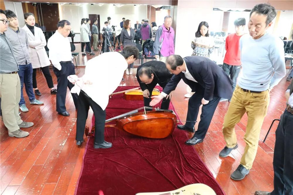 在听取完三家研制单位的汇报后,进行现场盲奏与试奏环节。专家就三把乐器的声学品质和制作工艺进行了评价。在随后的讨论部分,各位专家从自身专业角度出发,对三把乐器从声学品质和制作工艺等方面进行了深入探讨与交流。首先,专家学者肯定了民族低音拉弦乐器研制的必要性。就此次评价的三把琴,专家表示,从音色的灵敏度、音质的浑厚色彩、高低音区的均衡度以及音量,基本都能满足与民族乐队中其他乐器的融合。同时,在制作工艺方面,与现有民族乐队使用的乐器外观协调,工艺结构也较为合理。但部分乐器在演奏者的舒适度及工艺复杂度方面还有待提升。专家们表示,希望在今后的改良工作中,还能在外观和音色上更加突出中国民族音乐特色,研制出更加适合中国民族乐队中使用的低音拉弦乐器,填补现在的空缺。