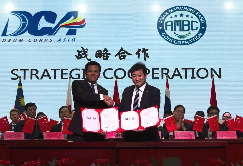 发布会上还进行了两项签约。DCA亚洲行进鼓乐联盟董事会主席刘运斌先生与AMBC亚洲行进艺术协会会长可信先生正式签署战略合作协议,未来将共同携手,以繁荣亚洲行进艺术为使命,助力世界行进艺术的发展。