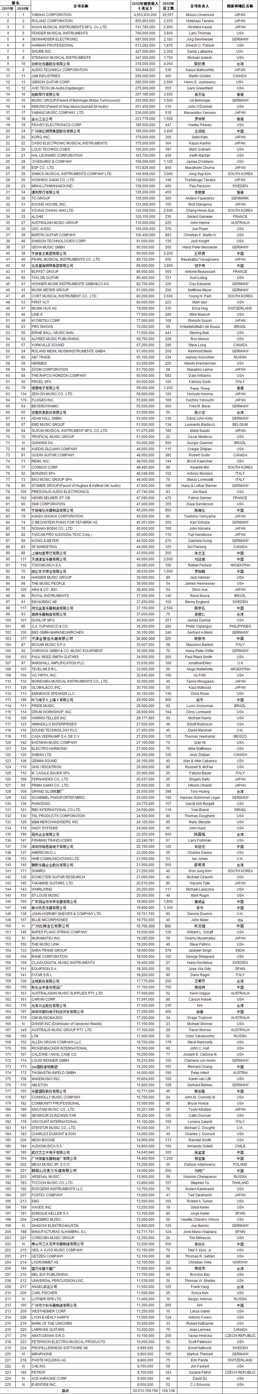 2011年全球乐器与音响制品225强榜单-中国乐器协会