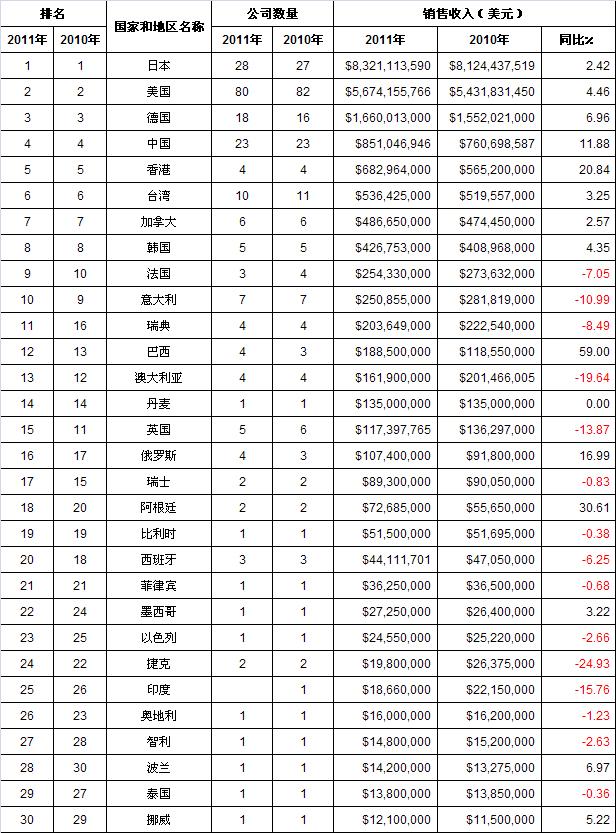 当前位置:首页>行业资讯>2011年全球乐器与音响制品225强概况(按国家划分)