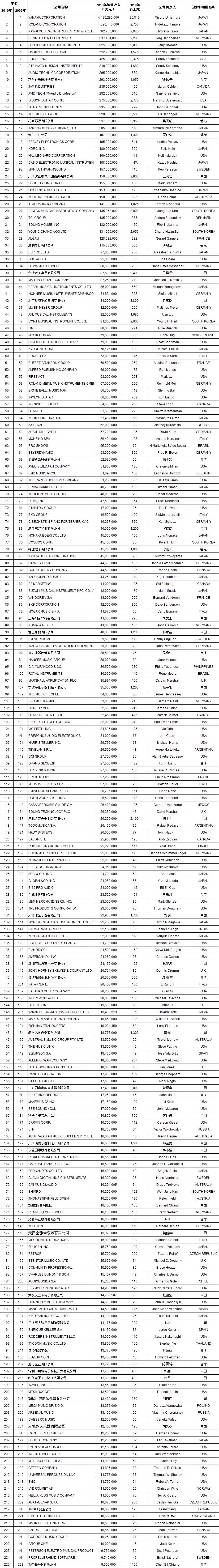 2010年全球乐器与音响制品225强榜单-中国乐器协会