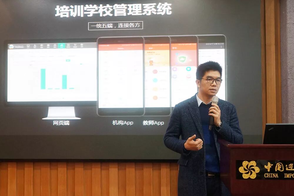 帮你教总经理助理符吉聪现场演示了帮你教培训学校管理系统的功能,从学生咨询,到报名缴费、排课调课,再到打考勤、布置作业,每一步都高效便捷,受到现场观众的热烈响应。