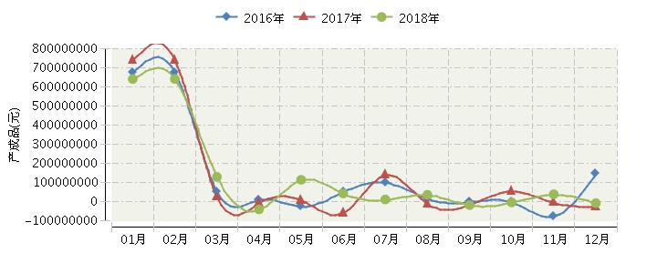 图7 2015-2018年全国乐器行业连续三年月度产成品对比
