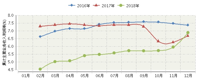图11 2016-2018年全国乐器行业月度累计主营业务收入利润率走势对比