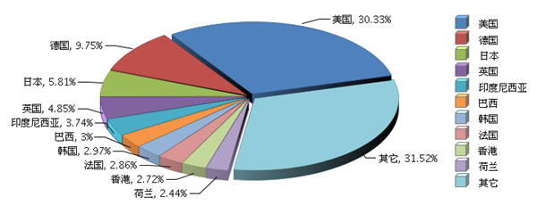 图30 2018年全国乐器行业累计进口额贸易国占比情况