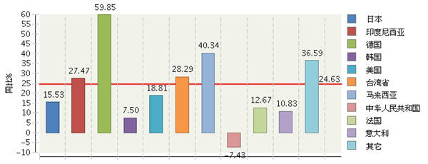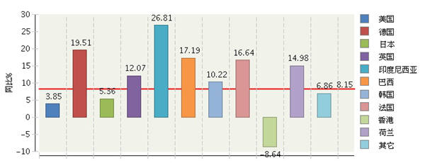 图22 2018年全国乐器行业累计出口额主要贸易国增速对比