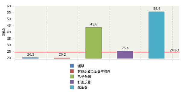图20 2018年全国乐器行业累计出口额子行业同比增长