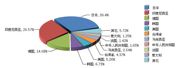2018年,日本仍为我乐器最大进口来源累计完成进口额1.48亿美元(占30.4%),同比增长15.53%;其次为印度尼西亚、德国、韩国及美国,分别增长27.47%、59.85%、7.5%及18.81%。