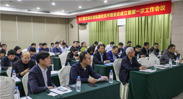五年一次的标委会换届大会是全国乐器标准化工作和乐器领域的一件大事。乐器标委会于2008年建立,新一届技术委员会为第三届。会议由副主任委员张小川主持。会上,副主任委员范廷国宣读了国家标准化管理委员会《关于批准全国乐器标准化技术委员会换届的公告》(2019年第11号),并由主任委员、副主任委员、秘书长向新一届委员颁发了委员证书。接下来,副主任委员肖巍针对本次换届情况作了详细说明,副秘书长王瑞宣读了《第三届全国乐器标准化技术委员会章程》,并经与会委员审议通过。最后,主任委员曾泽民做工作报告,对委员们的辛勤工作和取的成绩表示感谢,并对新一届标委会做了工作展望,并提出新一届工作要求。