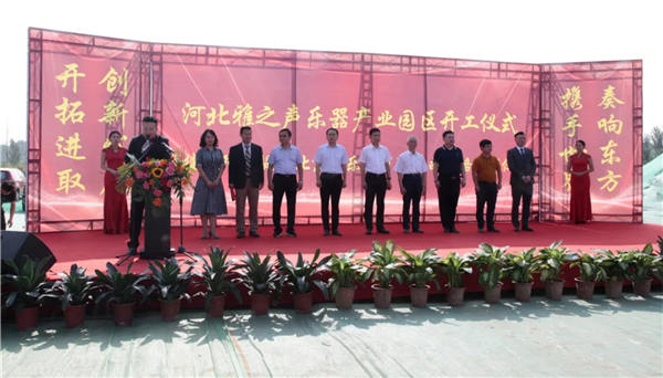 7月30日,雅之声乐器科技产业园区开工仪式在河北深州举行,深州市市委常委、常务副市长文健,深州市市委常委、宣传部部长范龙海,深州市发改委局长刘殿奎,深州市前磨头镇党委书记李朝辉等地方领导,捷克AMATI(北京)乐器公司代表关浩,河北华声乐器制造有限公司总经理张立根,河北雅之声科技股份有限公司总经理张立营,总工程师杨帆,南京新辉琴行总经理刘小辉等产业代表,以及施工方和企业员工代表等200余人出席。中国乐器协会常务副理事长曾泽民到场参加活动并致辞。