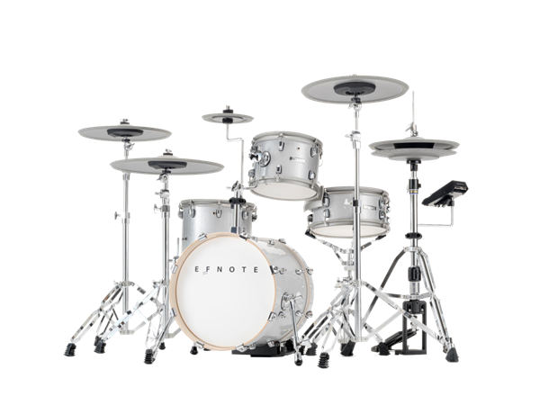 EFNOT5提供一种真实的演奏体验,仿若原声乐器,具有优雅的外观,愉悦的触感和美妙的音色。全尺寸鼓音,重量模拟高质量镲片,踩镲脚踏精准反应,操作简单直观,练习、录音功能一并齐具。5套预设鼓组+45套用户鼓组,3触发军鼓,双触发嗵嗵鼓,单触发脚鼓,Line输出、 Phones输出、音频输入,USB音频+MIDI输入输出。