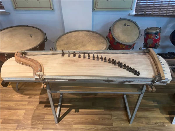 本发明提出了古筝合奏、民乐队演出缺少低音乐器,解决了大型古筝合奏或民族乐团演出必须借用西洋乐器大贝司作低音的难题。