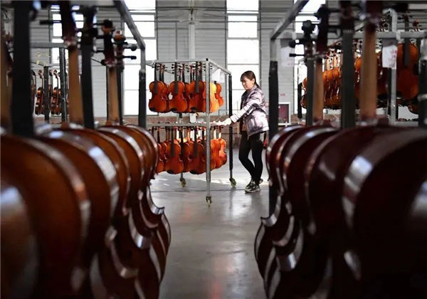 走进嘉华乐器的库房,里面摆满了即将出口到欧美的产品。作为一家主打海外中高端市场的管弦乐器生产企业,嘉华乐器年产吉他、提琴、电钢琴等各类乐器近40万只。