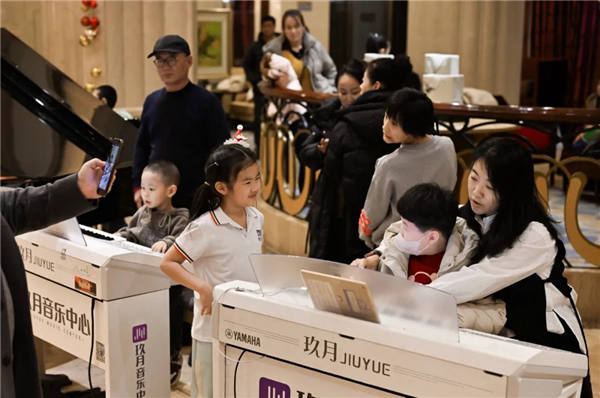 12月24日17时,大连国尊王朝大酒店内乐声悠扬,“琴韵暖冬,艺绽滨城——关注星星的孩子”公益专场活动温情上演。玖月音乐中心(大连)优秀双排键学员代表孙鹏超、钟雨含、张鑫铎、张文欣、孙旌祎、孙偌祎、董正璇、范依蓓、曹明扬、徐家宜齐聚现场,用灵动的指尖旋律,为自闭症儿童送上温暖与陪伴。