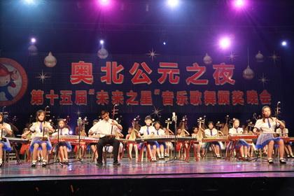中国乐器协会网讯:6月1日,由河北省音乐家协会主办、河北川韵文化艺术有限公司承办、河北秦川文体乐器有限公司、石家庄市秦川音乐艺术学校和河北电视台等单位协办的奥北公元之夜——第十五届“未来之星”音乐歌舞颁奖晚会在河北省艺术中心举行,三千余名师生和家长欢聚一堂喜庆六一儿童节。