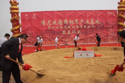 动员会结束后,武强县领导和曾泽民秘书长、北京乐器研究所所长陈晋武、德国博兰斯勒钢琴(中国)有限公司总经理方阳等在喜庆、热烈的氛围中共同为“隆尼施德国钢琴产业基地暨河北隆尼施钢琴有限公司”开工奠基培土,预祝项目精心施工,超前规划,集聚优势,突出实效。