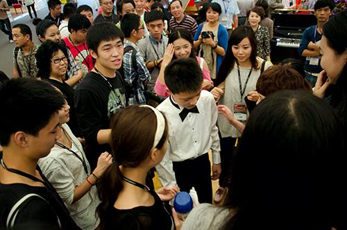 同样闪耀展会的是珠江钢琴集团首位签约小演奏家——鞠小夫,他连续两天来到企业展位,现场演奏海顿《奏鸣曲》、李斯特《匈牙利狂想曲》、肖邦《圆舞曲》、中国钢琴曲《浏阳河》等乐曲,优美的旋律不断从恺撒堡九尺大三角钢琴上传出,引来了众多观众驻足欣赏,舞台逐渐被层层包围。不少观众冲着恺撒堡优美的琴声和珠江钢琴集团首位签约小演奏家而来,上海电影学院音乐专业40名学生还组团前来观摩,有粉丝高举“I Love You”灯牌,送上鲜花为小夫喝彩助威,演奏完毕,多位观众与小夫在恺撒堡钢琴旁合影,索取签名,场面火爆。