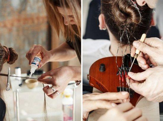 发丝琴弦制作过程并不复杂:先将小部分头发分成四束;再将每束头发扭曲粘合,这一步也是最关键的一步;最后将头发制成的琴弦固定在小提琴上,修剪调音。这样,一副奇特的小提琴琴弦就制造完成了。