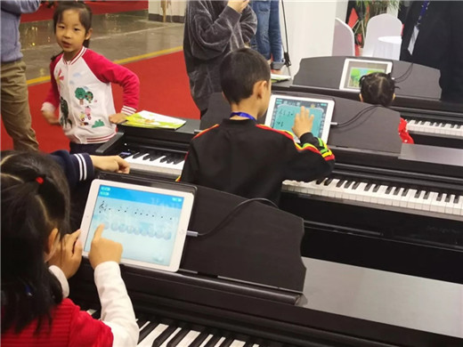 由海伦钢琴方面精心准备的海伦智能钢琴课堂和海伦音乐中心互动课吸引了国内外众多参观者的驻足。尤其是海伦智能钢琴课堂和融合了声学钢琴工艺和互联网科技的海伦最新产品——海伦i·Piano智能钢琴,更是吸引了众多小朋友前来参与和体验。