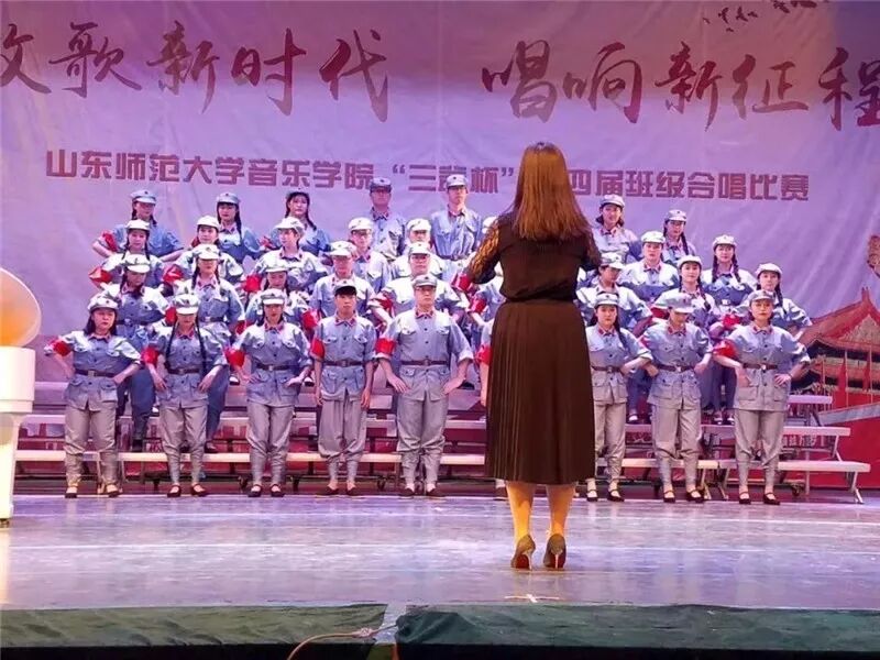 参赛同学们刚上场就让观众和评委老师们眼前一亮。一袭整洁统一的制服和热情洋溢的脸庞让我们感受到了山东师范大学音乐学院学子坚持不懈、自强自信的精神。铿锵有力的男声和柔和优美嘹亮的女声完美配合,充分展现了同学们对母校的热爱和积极向上的精神风貌,也唱出了音乐学院特有的风采。