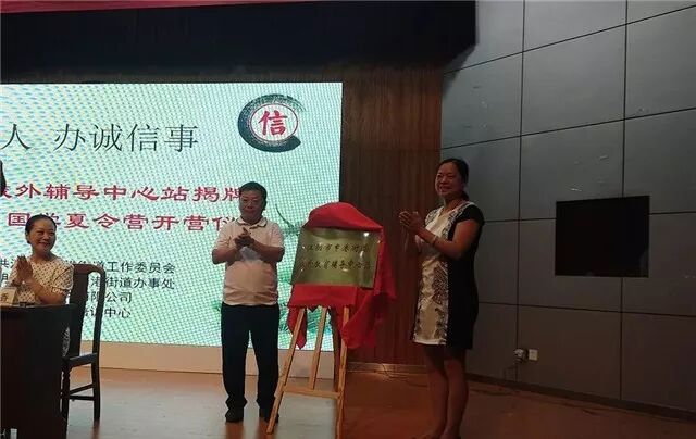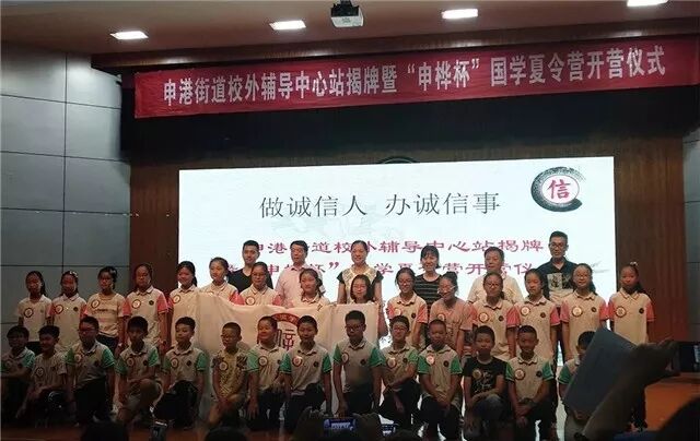 黄英致词,叶雪琴、时建明为申港街道校外中心站揭牌,汤忠鹤为夏令营营员代表授旗。黄英在致词中指出,校外辅导中心之所以落户金杯安琪乐器有限公司,正是因为时建明董事长有一颗公益事业的热心,长期支持公益事业的发展,金杯艺术培训中心具有优质师资资源。成立校外中心辅导站及举办本次夏令营活动,目的主要是引导青少年树立社会主义核心价值观;传承国学经典、弘扬中华文化,为青少年成才服务;推动申港街道关工工作的深入开展,更好地为申港经济、社会事业高质量发展作出应有贡献。