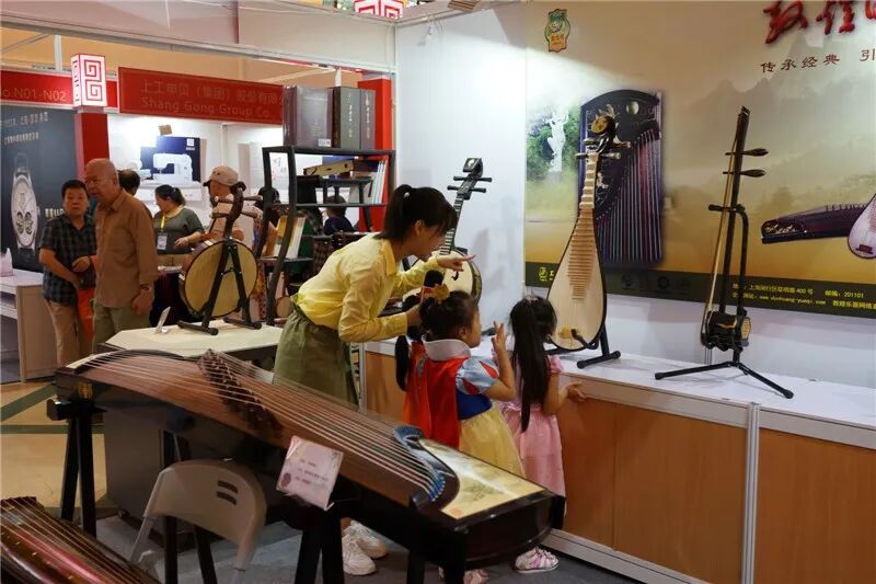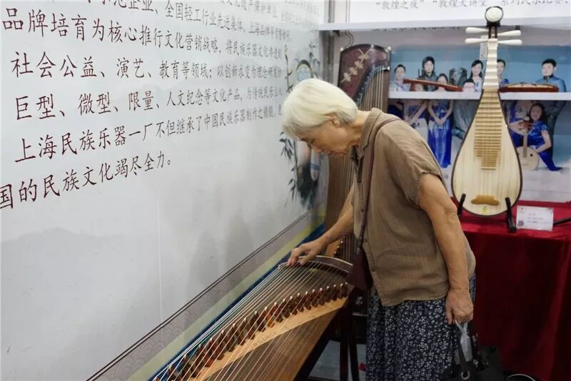 在上海民族乐器一厂的展位上,陈列着“西湖十景”古筝、“一叶一如来”二胡、“一笑一尘缘”中阮、“秋意湘妃”琵琶等精美的民族乐器,博古架上还摆放着可爱精致的礼品版小乐器与文化气息浓厚的民乐文化书籍。有非常多的观众前来展位参观咨询,老年观众怀着对“敦煌”的深厚感情,告诉工作人员:我有“敦煌”的某某乐器,视之珍宝,想再次购买给儿孙。一些年轻观众向工作人员讲述他们所知道的“敦煌”,在展位久久不愿离去。上海市文化发展基金会会长周慕尧、上海市商务委员会副主任刘敏等领导来到展位指导工作。“哈哈少儿”频道栏目组带领着三位可爱的小朋友也来到“敦煌”展位拍摄专题节目。“敦煌”展位负责人季秋英还来到上海人民广播电台“直通990”向听众朋友分享“敦煌牌”老字号的发展经验。
