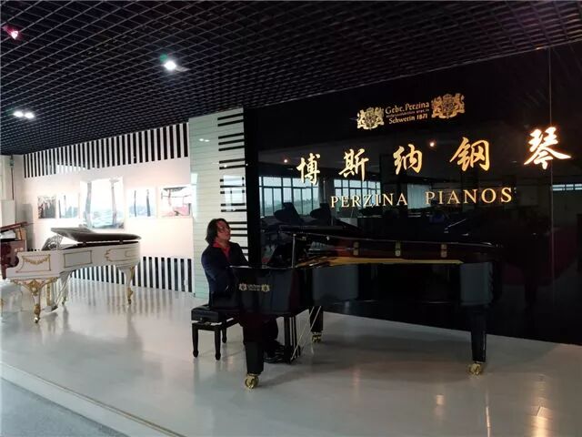▲中国著名青年钢琴家平原先生在博斯纳展厅弹奏博斯纳GBT175CMW三角钢琴