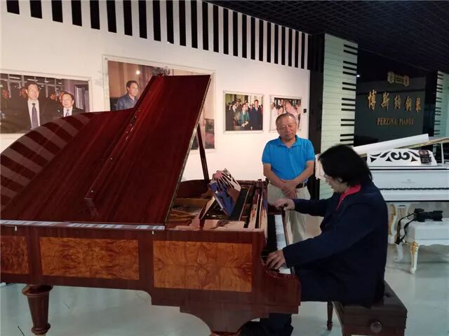 在博斯纳总裁孙强先生和黄奎勇经理的陪同下,来访嘉宾们参观了博斯纳产品陈列厅。在博斯纳产品陈列厅,平原先生认真仔细地试弹了已升级换代的博斯纳GBT175CMW和GBT217BB专业演奏级三角钢琴,对博斯纳钢琴颇具德国钢琴的声学品质风韵和得心应手的弹奏触感而深感惊喜,给予了高度评价与赞扬。