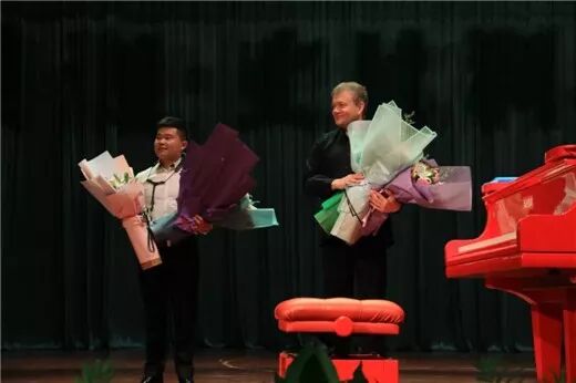 在数首经典乐曲的钢琴独奏之后,他与我国著名萨克斯演奏家王有为博士为现场观众献上了精彩的钢琴与萨克斯合奏。钢琴清脆而颗粒感的音色与萨克斯缠绵悠扬的乐声交融在一起,让那些经典乐曲的音乐内涵更为丰富。中外艺术家的合奏让现场观众领略到了不同乐器合奏的另一番音乐魅力,一曲奏罢,台下响起热烈经久不息的掌声。