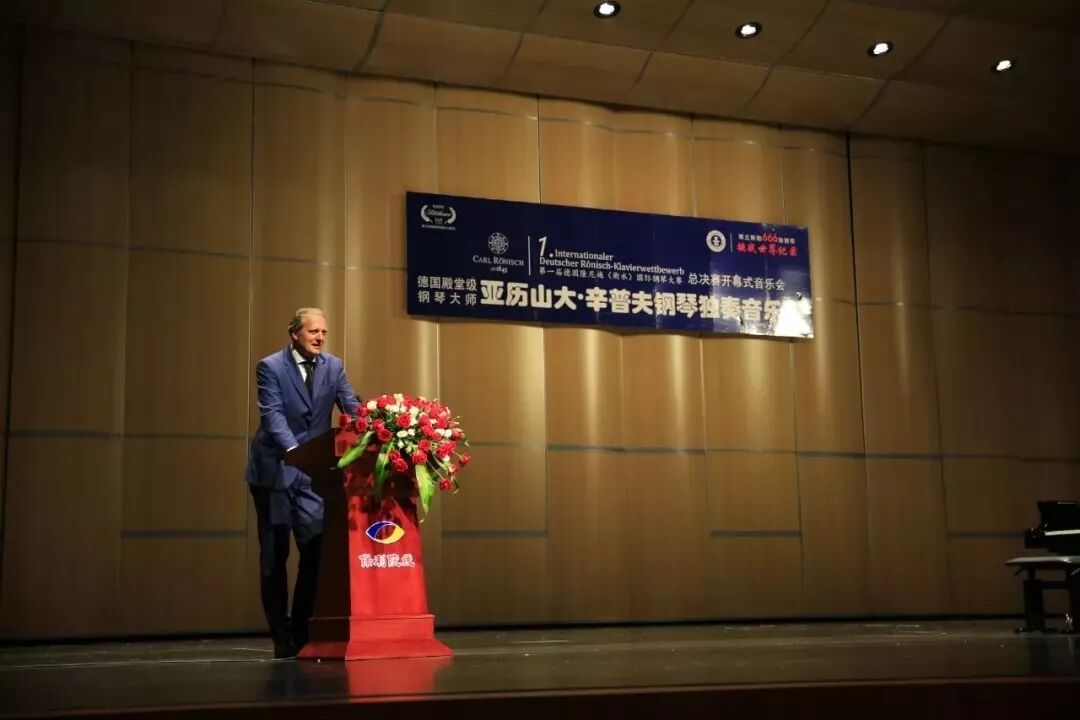 10月2日晚,第一届德国隆尼施(衡水)国际钢琴大赛总决赛开幕式暨隆尼施国际钢琴大师亚历山大·辛普夫独奏音乐会在河北衡水保利大剧院举行,由德国驻华大使馆、德国音乐理事会、德国钢琴制造协会支持,衡水市人民政府、德国博兰斯勒钢琴基金会主办,武强县人民政府、衡水学院、衡水市旅游发展委员会及德国隆尼施钢琴集团共同承办的第一届德国隆尼施(衡水)国际钢琴大赛总决赛由此正式拉开了帷幕。