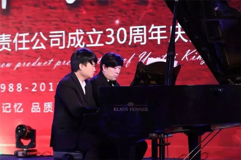 产品讲解结束,由谭博士、李世镐来到舞台上弹奏克劳斯·芬纳品牌的K280款三角钢琴,表演四首联弹,为现场来宾演奏西班牙狂想曲的“集市”,赢得现场来宾的一片掌声。