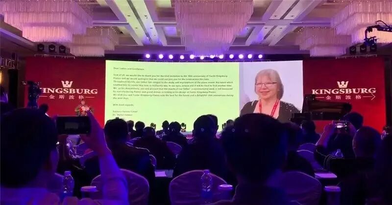 芭芭拉 ·芬纳女士在贺信中讲到:“首先非常感谢邀请我参加烟台金斯波格钢琴的30周年盛典,很抱歉不能出席。在我父亲的一生,中,一直在致力于钢琴的研究和提升,在我们的眼中,他的才华使他能够轻松驾驭这项光荣的工作,这是独一无二的。我们作为他的后辈,非常欣慰的看到烟台金斯波格钢琴在立式和三角钢琴的生产中仍然在遵循着他的设计。我们衷心希望金斯波格在今后能够成为世界最好的钢琴,并预祝公司30周年庆典圆满成功。”