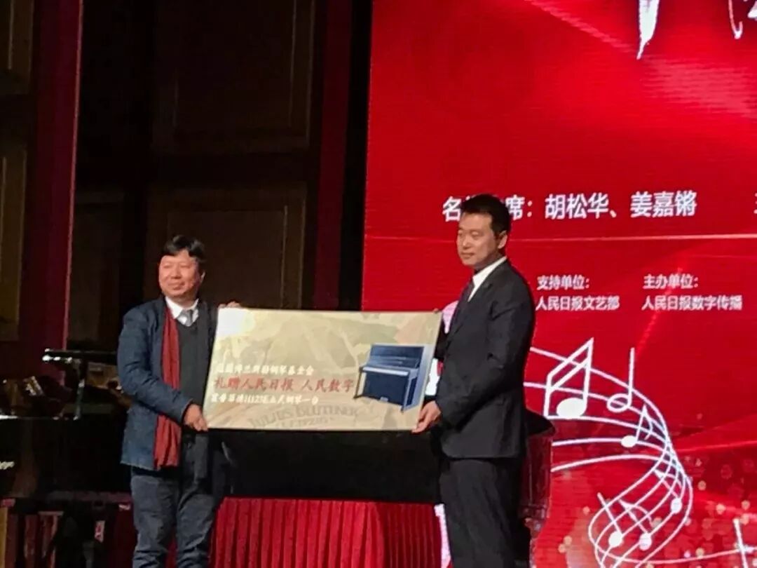 作为本次活动的指定用琴品牌,德国博兰斯勒钢琴集团中国区总裁方阳应邀在闭幕式上致辞,并代表德国博兰斯勒集团,将一架刚刚在河北衡水参与了博兰斯勒666架钢琴挑战吉尼斯世界纪录活动,并成功创造新吉尼斯世界纪录的纪念版钢琴礼赠人民日报数字传播。