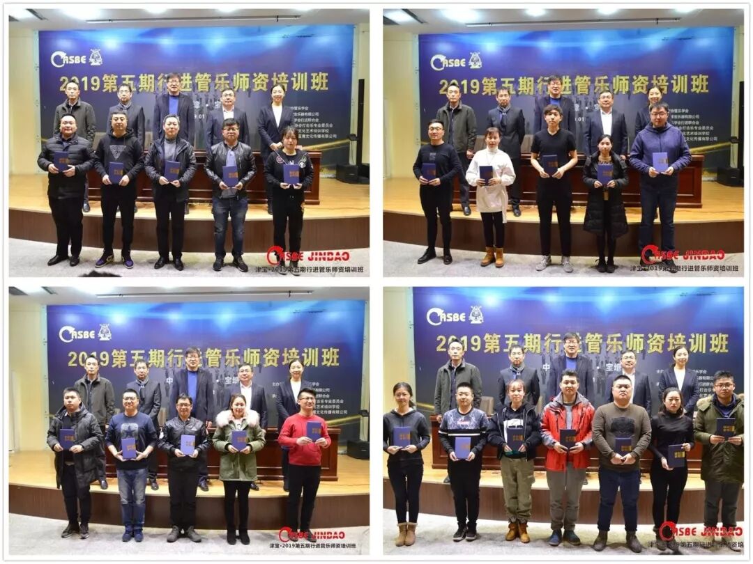 1月11日,由中国音协管乐学会、天津市津宝乐器有限公司主办,中国管乐学会行进联合会、中国乐器协会打击乐专业委员会、天津市津宝文化艺术培训学校联合承办的2019第五期全国行进管乐师资培训班结业仪式在天津市宝坻区津宝乐器有限公司举行。