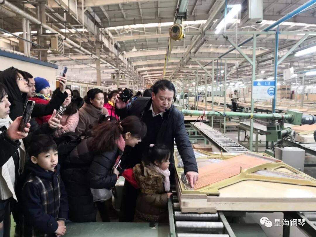 2019年2月18日,北京佳韵国风琴行、飘晗音乐培训学校师生以及家长莅临星海钢琴集团公司体验星海音乐之旅。星海钢琴市场运营部副部长、星海杯工作办公室主任王世杰和市场运营部高级主管汪浩在星海工厂北门接待了大家。