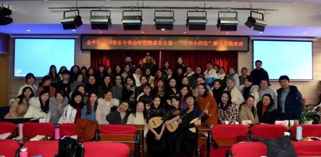 2019年1月8日,成都金牛区举行2018年音乐专委会年会暨课堂乐器“中华小四弦”融合实践培训活动。在此活动中,广州市音乐教研员王昕老师在《中华优秀传统文化艺术教育传承的课程建设》讲座,从国家教育政策宏观层面,介绍当前国家十分重视传统文化教育的形式,中华小四弦进课堂、进教材、进课程无疑是对中华优秀传统文化艺术教育传承的课程建设的重大贡献,为中华小四弦这种课堂乐器在音乐教育中推广中国打下了政策基础。